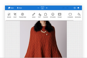 Editor de imagem integrado no backoffice, que permite ajustes de imagem, recorte, efeitos, etc.
